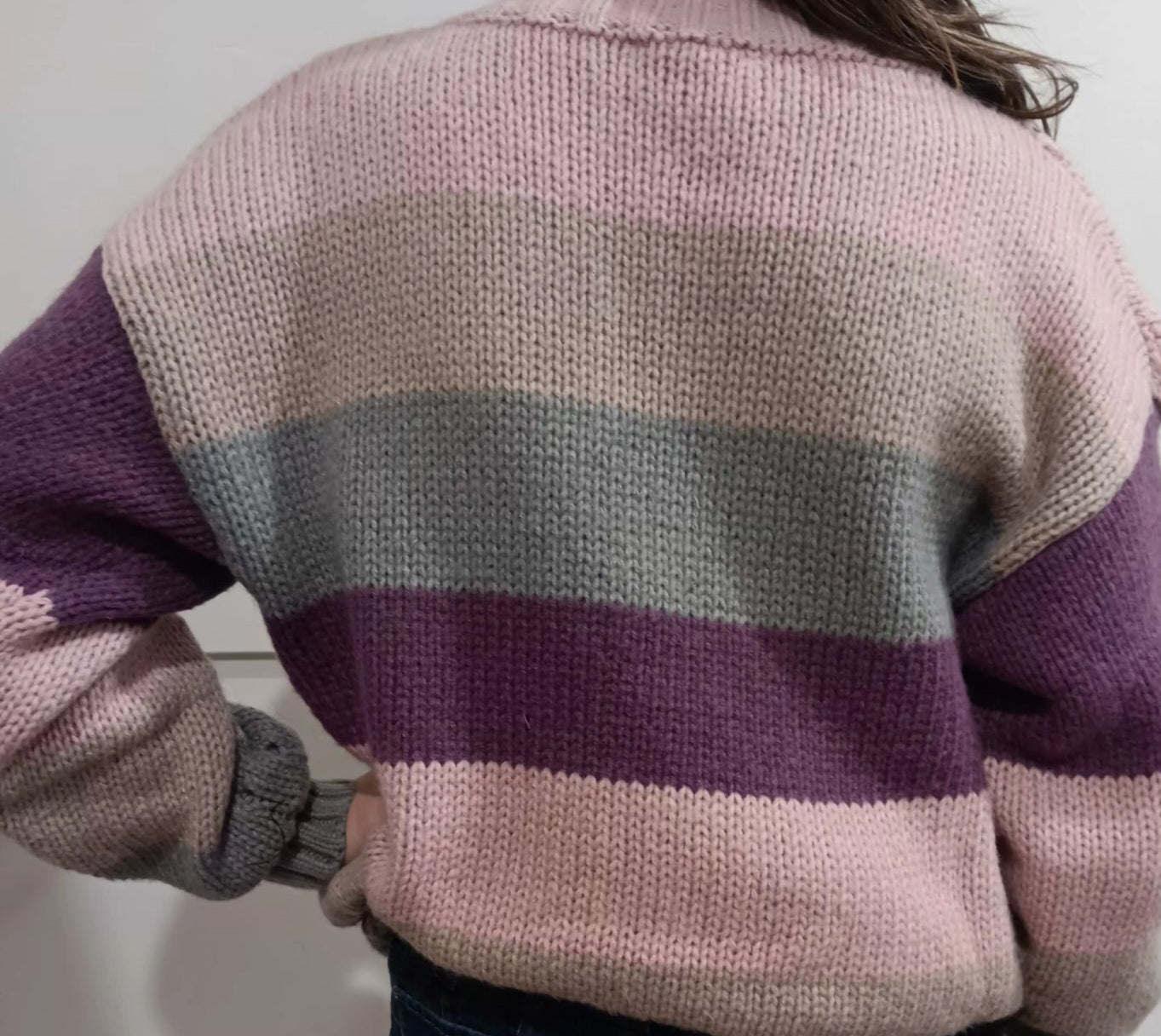 Mauve Multi-color stripe cable knit sweater